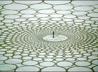 “Jim Denevan recently made the world’s largest freehand drawing on a dry lake in Nevada. How big is it? Three miles across. Jim walked for eight days, about 100 miles to draw the pattern.” jimdenevan.com