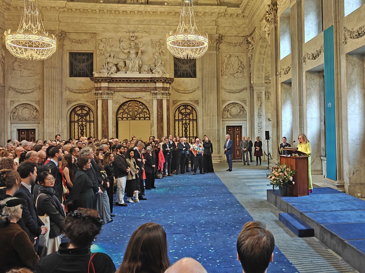 En niet te vergeten schilderkunst (“AI kan er wat van […] schilderkunst is niet dood […] springlevend” en “hoop […] moeilijke tijden […] betekenis” en “uitdrukking van emotie […] humeur op het doek […] de toekomst, die nog komen moet […]”) De toespraken waren weer even bijzonder als altijd. De vierde en laatste van juryvoorzitter Mirjam Westen die wordt opgevolgd door […].