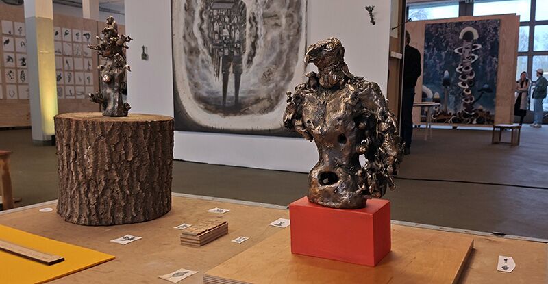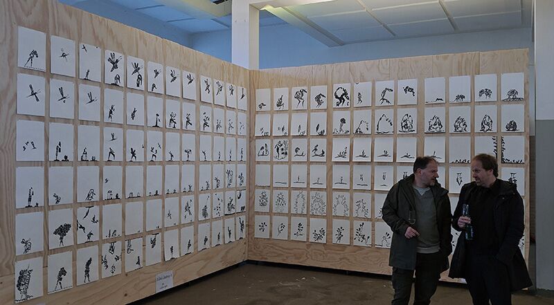 Vittorio Roerade toont daar bekend en nieuw werk: tientallen schilderijen, beschilderde borden, zelfgemaakte krukjes en bronzen sculpturen en als cadeau 600 tekeningen uit de serie ItUnd’s Universe van inmiddels 2.000. Ze vormen zijn persoonlijke (en almaar uitdijende) universum: vervreemdend, speels en herkenbaar, zeker als je wel eens een gesprek met hem had.