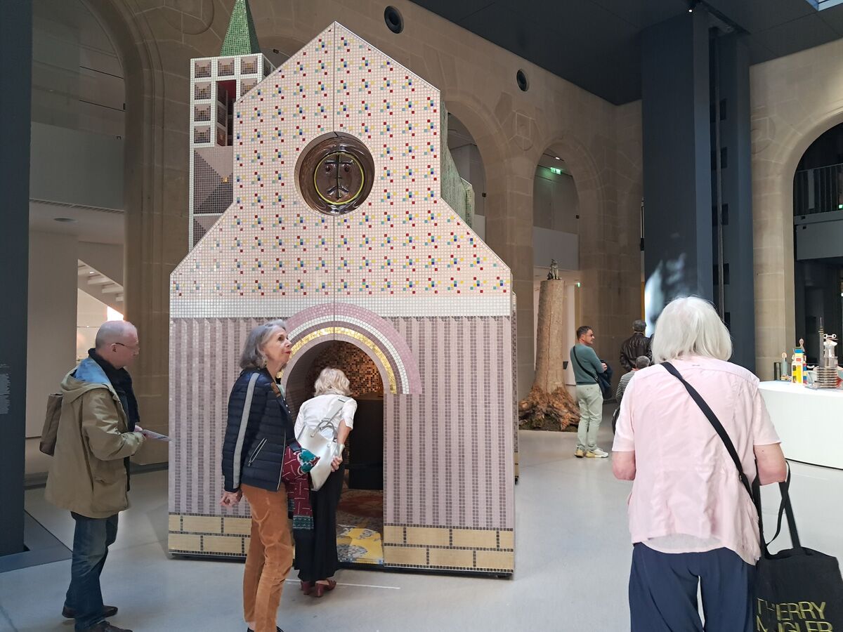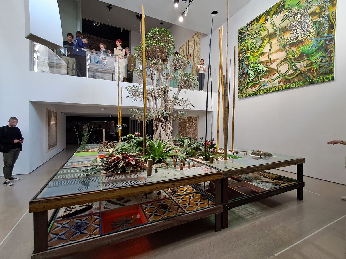 Fondation Cartier ligt op een steenworp afstand van het Louvre en haar, toen ik er was, zonovergoten tuinen. Bij aankomst uit de metro kan je afhankelijk van interesse en smaak, je kunt kiezen voor oudere kunst (Louvre), hedendaagse kunst (Cartier) of boekje lezen of genieten van de zon in de tuinen, winkelen, of op een terras gaan zitten in de straten om die locaties heen. Mei vakantie – zomervakantie, tripje naar Parijs, zelfs als je toch beetje bij elkaar in de buurt wil blijven (meet up metrostop) is dit ideaal voor een groepsvakantie, voor ieder wat wils, voorkomt chagrijn!